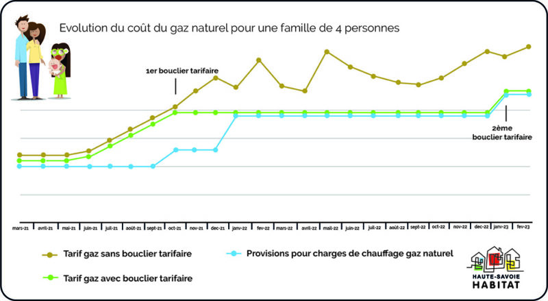 Depuis 2021, le coût des énergies et plus particulièrement celui du gaz et de l’électricité ne cesse d’augmenter (forte demande mondiale, crise en Ukraine, production nucléaire française réduite…). La mise en place par le Gouvernement d’un bouclier tarifaire sur le gaz et l’électricité a permis de limiter l’impact de ces augmentations sur le budget des ménages résidant dans un immeuble chauffé au gaz naturel.