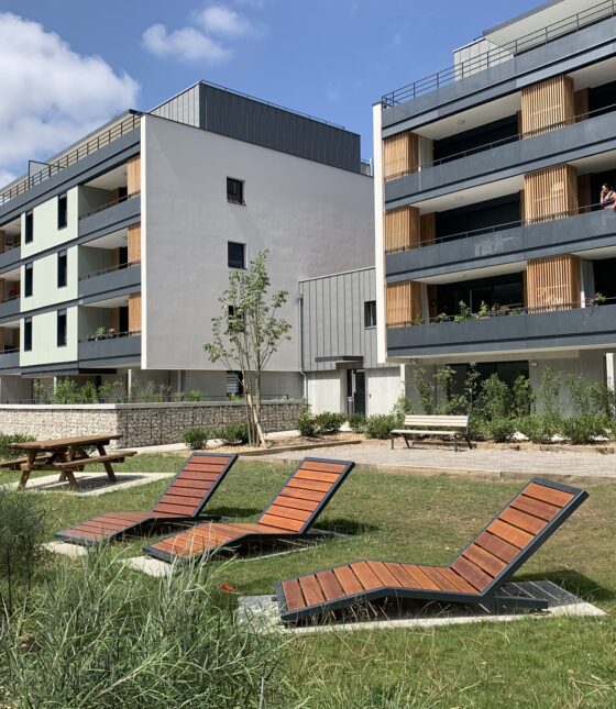 Le projet se compose de 2 entités bien distinctes : une partie locative et une partie en accession à la propriété. Chacune possède ses accès, parkings et garages séparés ainsi qu’une assise foncière indépendante. Cette distinction en 2 éléments s’inscrit dans le cadre d’une composition d’ensemble et d’une unité architecturale renforcée par la présence d’un grand espace vert central collectif d’une surface de 520 m², de lieux de rencontre et de jeux favorisant le « vivre ensemble ».